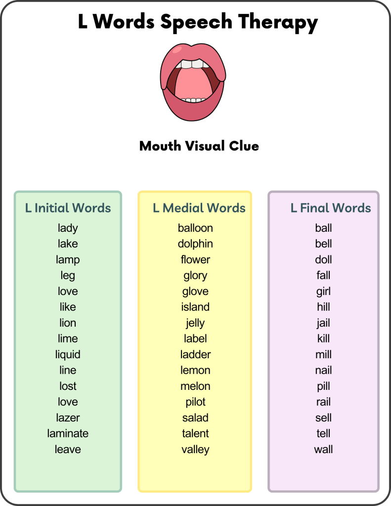 - Model the Sound: Exaggerate the L sound and show how it’s made (tongue position and lip movement).